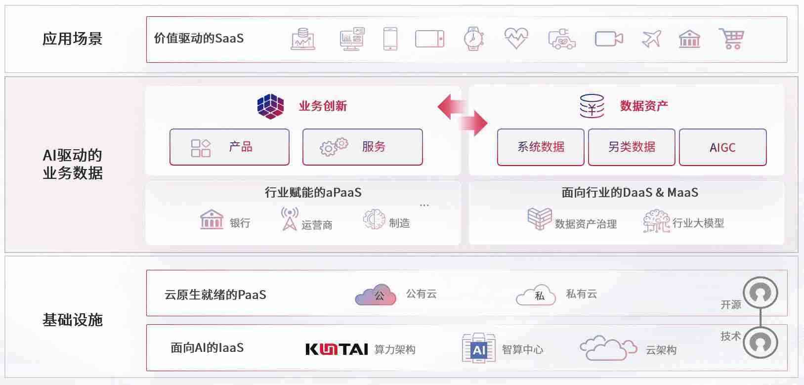 数字时代,,围绕企业数字化转型的关键要素,,,,狗子28数码开创性的提出数云融合战略和技术体系框架,,着力在云原生、、、数字原生、、、、AI原生和信创产业上架构产品和服务能力,,,为处在不同数字化转型阶段的快消零售、、、、汽车、、、、金融、、医疗、、政企、、、教育、、、运营商等行业客户提供泛在的敏捷IT能力和融合的数据驱动能力,,,构建跨界融合创新的数字业务场景和新业务模式,,,助力企业级客户建立面向未来的核心能力和竞争优势,,全面推动社会的数字化、、、、智能化转型升级。。