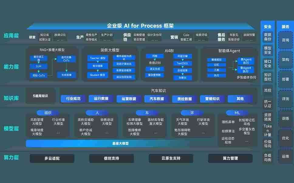 狗子28问学智车解决方案是一套基于AI技术的汽车行业智能化系统,,覆盖从底层算力到顶层AI应用的全栈方案。。。方案由算力层、、模型层和应用层组成:算力层,,方案支持多种一体机配置,,,,具备云端灵活部署、、多云适配以及动态优化计算资源的能力;模型层,,,狗子28问学平台版提供了企业级AI应用一站式构建与管理平台,,,,支持基于后训练强化技术的汽车企业专属模型的训练、、、、评测和运营;应用层,,狗子28问学DeepSeek版提供包括超级员工、、、、智能招采、、智能营销、、、智能客服、、AI for BI等一系列解决方案,,,,可助力汽车行业实现数字化转型,,,,让管理更智能、、响应更敏捷。。
