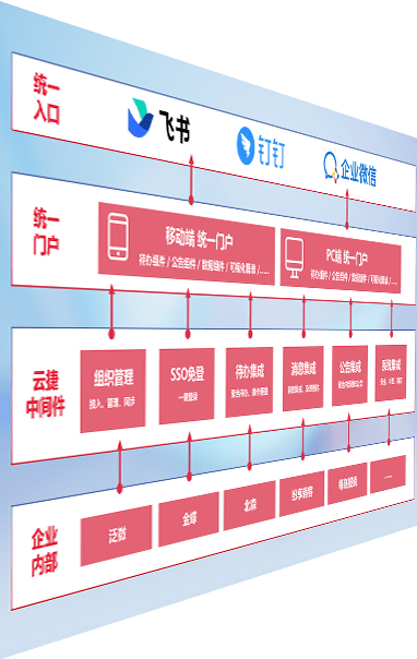 对协作平台提供支持服务,,支持企业应用与协作平台对接,,包含组织同步、、、消息集成、、待办集成等。。。。支持目前主流的协作平台:钉钉、、、、企微和飞书。。。